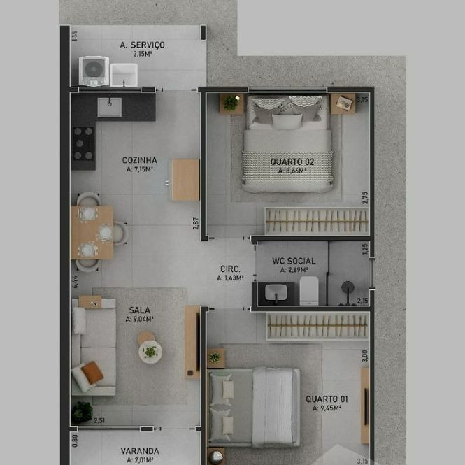 - 2 Dormitórios - 2