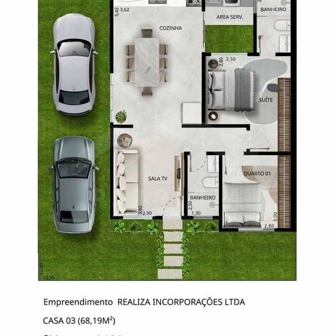 Com ambientes amplos e bem iluminados, a casa foi planejada para oferecer praticidade no dia a dia e aconchego em todos os momentos.