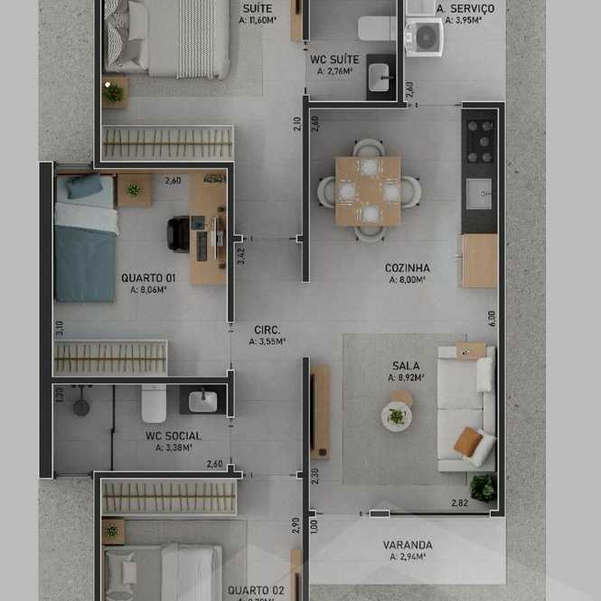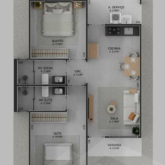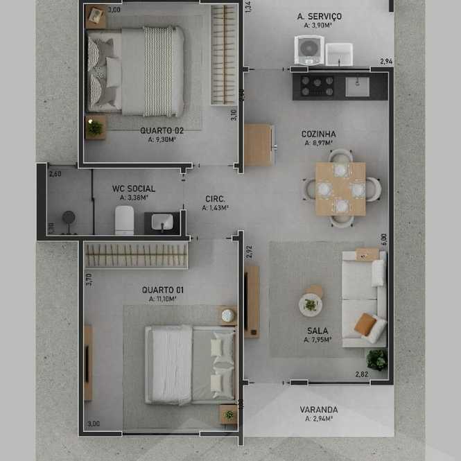 - **Ambientes Amplos:** Aproveite a luminosidade natural e a ventilação em cada cômodo.
